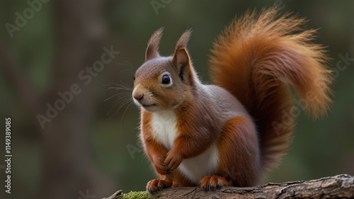 © titik, Fototapeta premium Red squirrel perched on a branch in a forest.