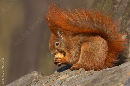 © Mirek Kijewski, Obraz premium Red squirrel (Sciurus vulgaris) eating walnuts
