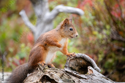 Naklejka premium Red squirrel (Sciurus vulgaris) in fall
