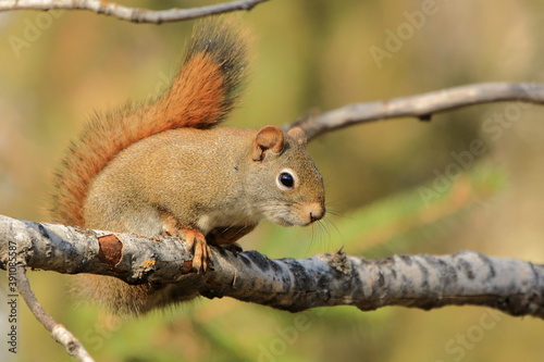 Obraz premium Red Squirrel sitting on a tree branch