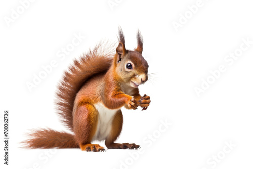 Obraz premium Red Squirrel Standing on Hind Legs. On a White or Clear Surface PNG...