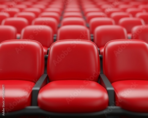 © bayu, Fototapeta premium Red stadium seats with empty rows.