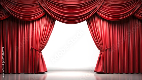 © Sathaporn Buarabut, Fototapeta premium Red stage curtain in a theater from a low angle perspective