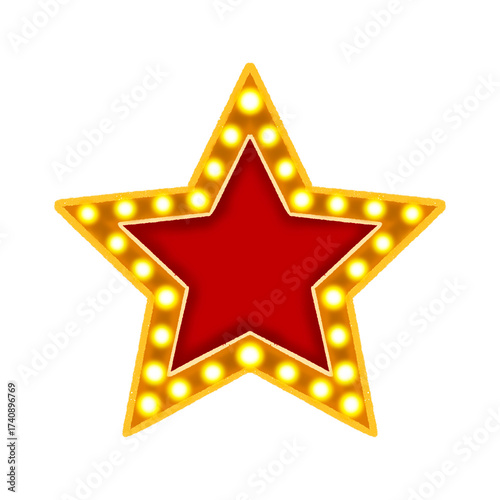 © 7nov.studio, Fototapeta premium Red star Light frame sign neon decoration, theater announcement campaign event vintage hand drawn on transparent background