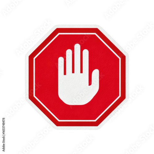 © Vector Nazmul, Obraz premium Red stop hand sign, Warning and Caution Icon isolated on transparent background Remove png, Clipping Path, pen tool
