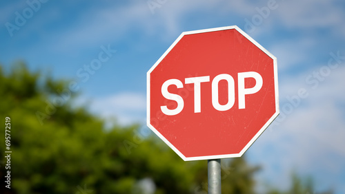 Obraz premium Red stop sign concept background, 3d rendering