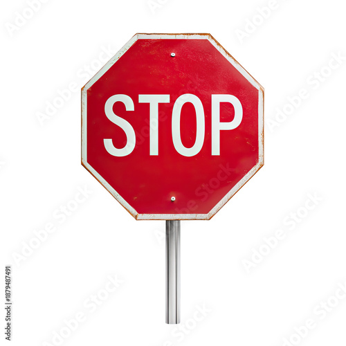 © RACHADA STORY, Obraz premium Red stop sign on a white background.