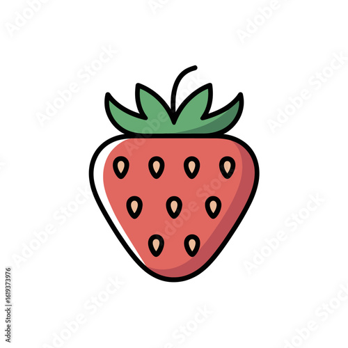 © Nur alam, Obraz premium Red strawberry with green leaves isolated on white background