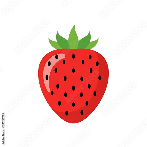 © zerostudio.id, Fototapeta premium Red Strawberry with Seeds and Green Leaves