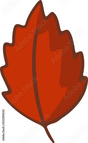 © vectorfusionart, Naklejka premium Red stylized autumn leaf is floating on transparent background, showing flat design, jagged edges