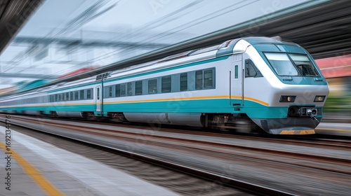 © Oksana, Naklejka premium Red subway train approaching platform in urban station during cloudy day with large windows showcasing city view