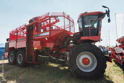 Fototapeta premium red sugar beet harvester at summer exhibition