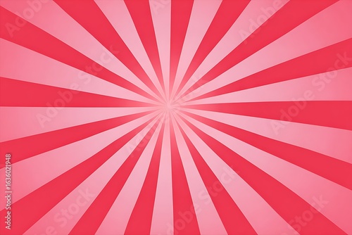 Fototapeta premium Red sunburst rays background, flat vector with bright radiant center