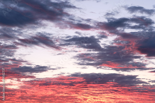 © Berg, Fototapeta premium Red sunrise in the morning sky with clouds.