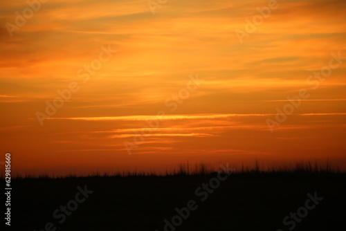 © Halilibrahimgunes, Fototapeta premium Red sunset and mountains silhouette