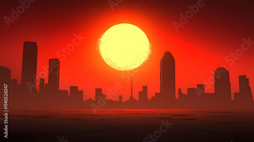 © share, Obraz premium Red Sunset Cityscape Illustration