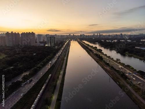 © Rodrigo, Fototapeta premium Red sunset on grand road next to river