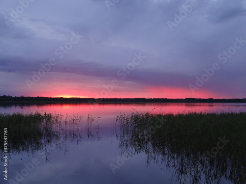 © Gunars, Fototapeta premium Red sunset on the lake