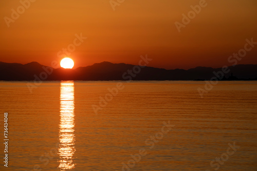 Fototapeta premium red sunset or sunrise over the sea, landscape concept