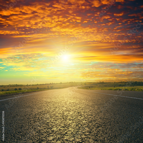 © Mykola Mazuryk, Naklejka premium red sunset over asphalt road