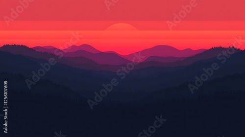 © lisa, Fototapeta premium Red sunset over layered mountains