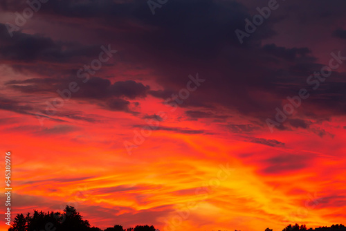 © VertigoBarrov, Fototapeta premium Red sunset sky dramatic in north