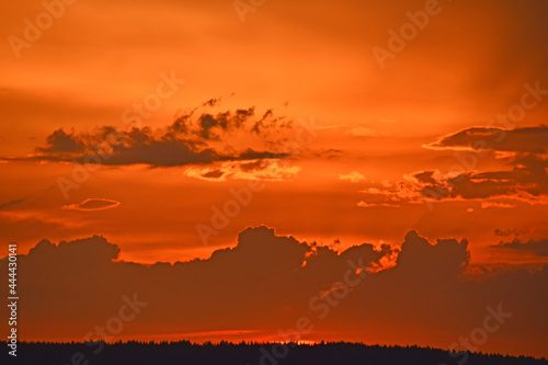 © Lushchikov Valeriy, Fototapeta premium Red sunset with clouds in the evening