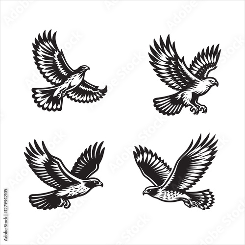 © MdZulhash, Obraz premium Red tail hawk vector, flying, set hawak