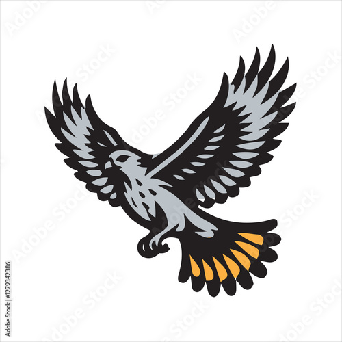© MdZulhash, Obraz premium Red tail hawk vector, flying, set hawak