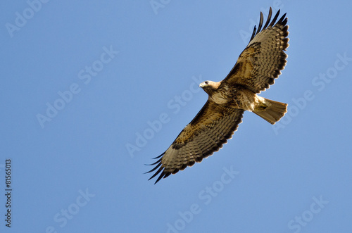 Obraz premium Red-Tailed Hawk Flying in a Blue Sky