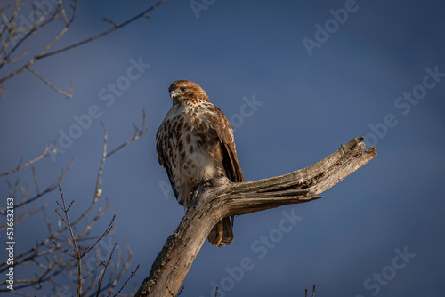© Judy, Obraz premium Red-tailed Hawk perched on a dead tree branch