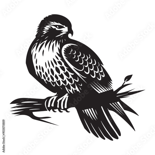Fototapeta premium Red-tailed hawk Silhouette, Eagle Clipart, Red-tailed hawk resting vector illustration