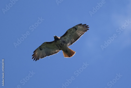 © Janet, Fototapeta premium Red Tailed Hawk soaring above farm fields in summer day