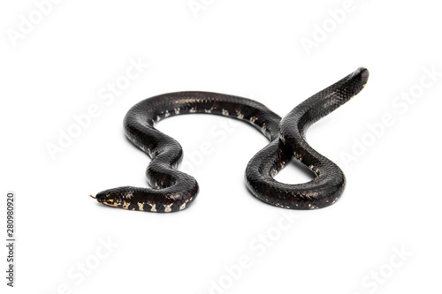 © Panupong, Fototapeta premium Red-tailed pipe snake not dangerous. but like to lift and spread the tail to threaten the enemy to misunderstand that is venomous imitate cobra. isolated on white background.