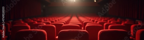 © Roman, Fototapeta premium Red theater seat with a spotlight coming from the ceiling