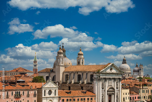 © dbvirago, Fototapeta premium Red tile roofs and church domes under sky in Venice, Italy