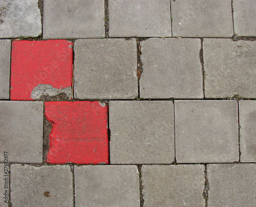 © johnjohnson, Fototapeta premium 2 red tilesembedded in pavement sidewalk