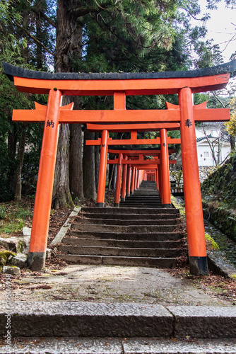 © Bossa Art, Naklejka premium Red Torii Gate Pathway Leading Upward in Arikoyama Inari Shrine, Izushi, Japan