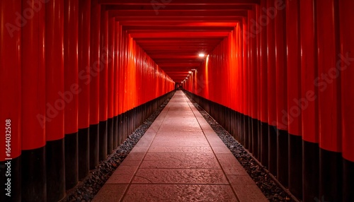 © weni, Fototapeta premium Red torii gate tunnel at night