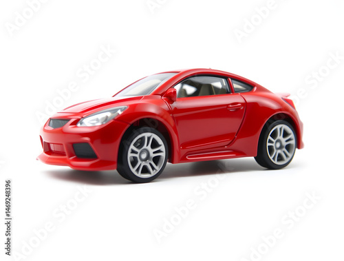 © Abdulloh, Naklejka premium Red toy car isolated on white background representing speed and luxury