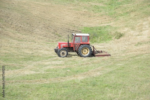 © José Lodos Benavente, Obraz premium Red tractor in a field.