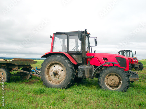 © ruslanaval, Fototapeta premium Red tractor in the field