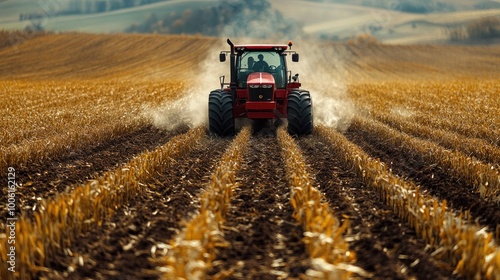 © Alienmarsh, Fototapeta premium Red Tractor Plowing a Field