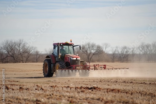 © Fitry, Fototapeta premium Red Tractor Spraying in a Field