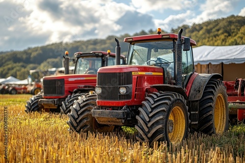 Obraz premium Red Tractors in a Field