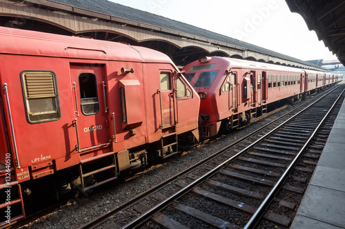 © Beautiful textures, Obraz premium Red train on the railway station in Colombo. Sri Lanka