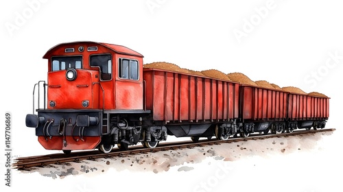 © DJINN 369, Obraz premium Red Train on Tracks with Cargo for December