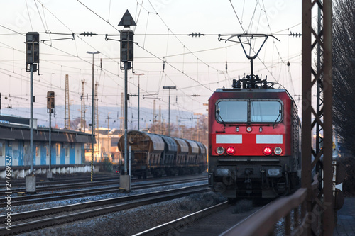 © Tobias Arhelger, Obraz premium red train on train tracks