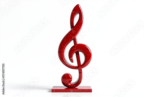 © Quick Master, Obraz premium Red Treble Clef Sculpture on White Background music