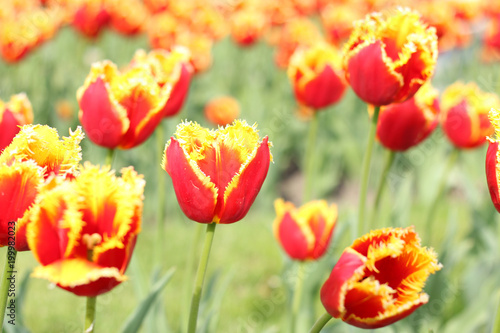 Obraz premium Red tulip blooming background